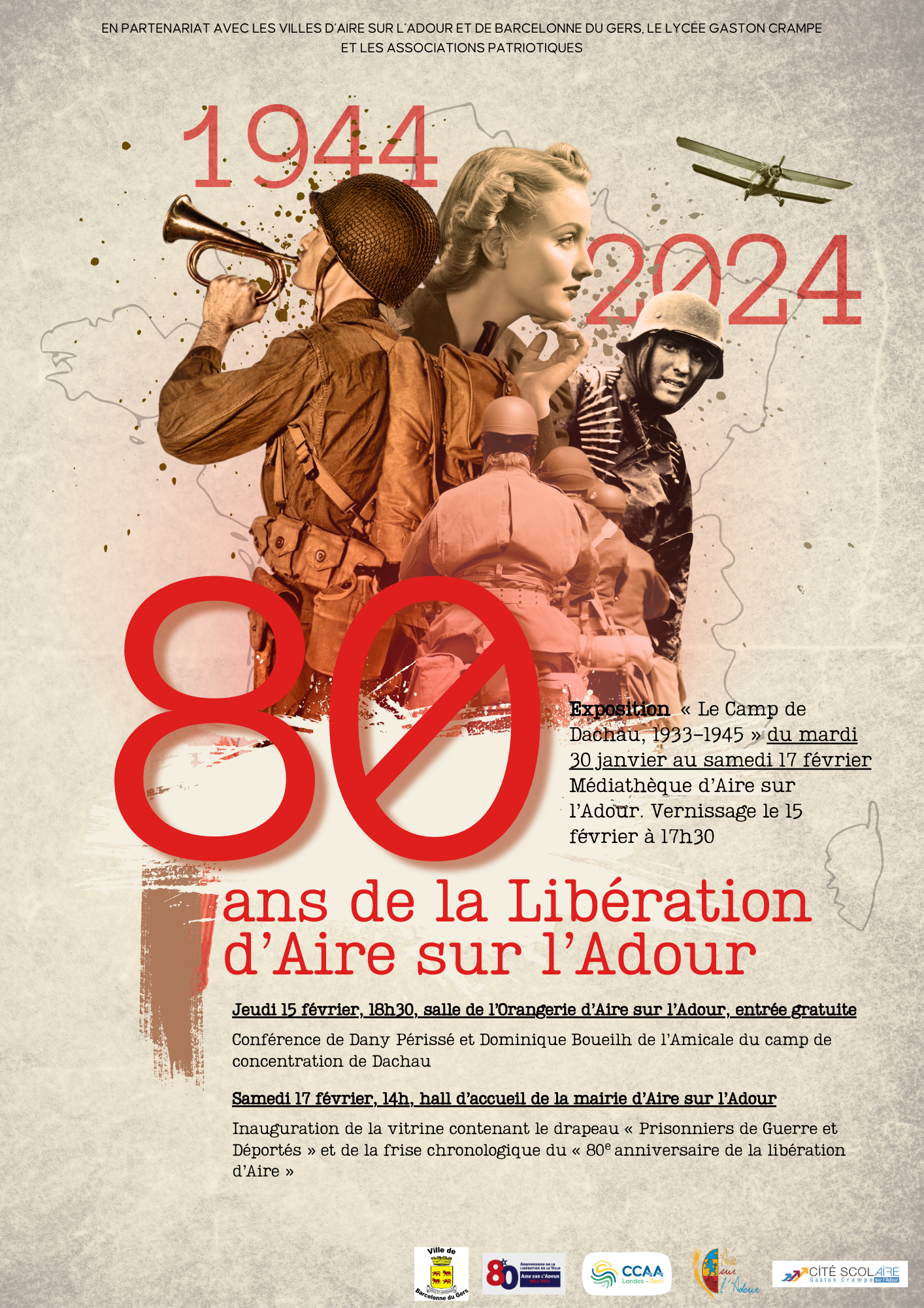 Pour commémorer le 80ème anniversaire de la Libération d’Aire sur l’Adour, la Ville propose des temps forts de janvier à août 2024 et invite les habitants à se rassembler et à vivre ensemble ce moment historique.
