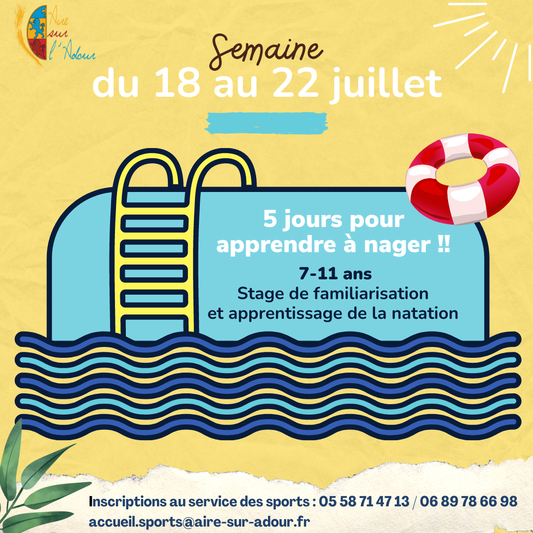 Face à son immense succès, le stage d’apprentissage à la nage sur 5 jours sera à nouveau proposé cet été pour les enfants de 7 à 11 ans. Il sera organisé du 18 au 22 juillet 2022. Le prix est de 100 euros pour 10 leçons de natation. La municipalité prendra en charge le transport en bus aller-retour des enfants jusqu’à la Cité Verte d’Hagetmau ainsi que l’encadrement de la journée par l’école municipale des sports. Le pique-nique du midi est à prévoir.
