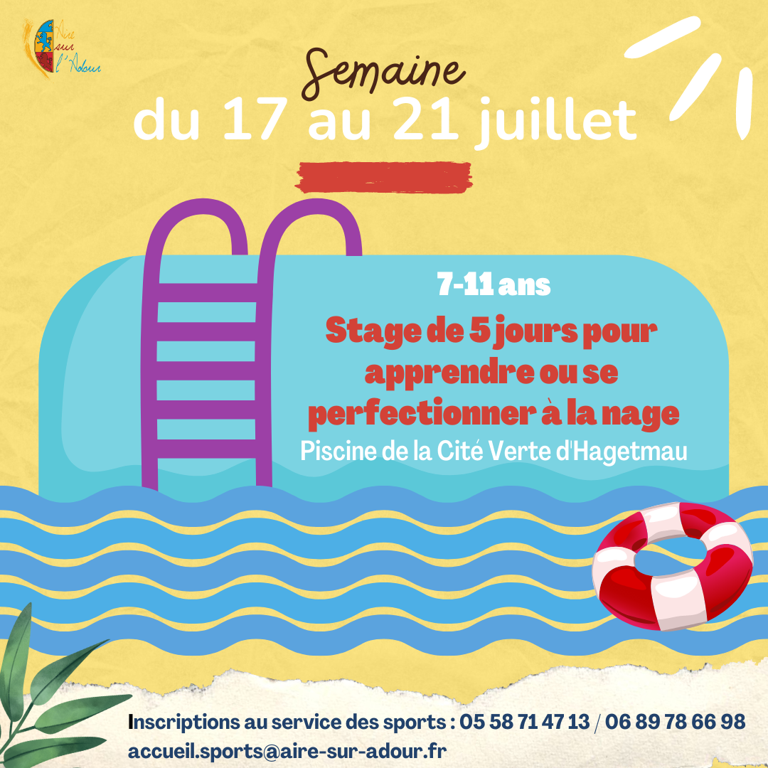 Face à son immense succès, un nouveau stage d’apprentissage et de perfectionnement à la nage sur 5 jours sera à nouveau proposé cet été pour les enfants de 7 à 11 ans. Il sera organisé du 17 au 21 juillet 2023. Le prix est de 100 euros pour 10 leçons de natation. La municipalité prendra en charge le transport en bus aller-retour des enfants jusqu’à la Cité Verte d’Hagetmau ainsi que l’encadrement de la journée par l’école municipale des sports. Le pique-nique du midi est à prévoir.