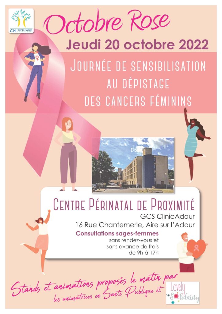 Le Centre Périnatal de Proximité du CHI de Mont de Marsan situé sur le site de la clinique GCS ClinicAdour organise le jeudi 20 octobre une journée de dépistages du cancer du sein et du col de l’utérus. En ce sens, les sages femmes proposent des consultations libres et sans avance de frais.