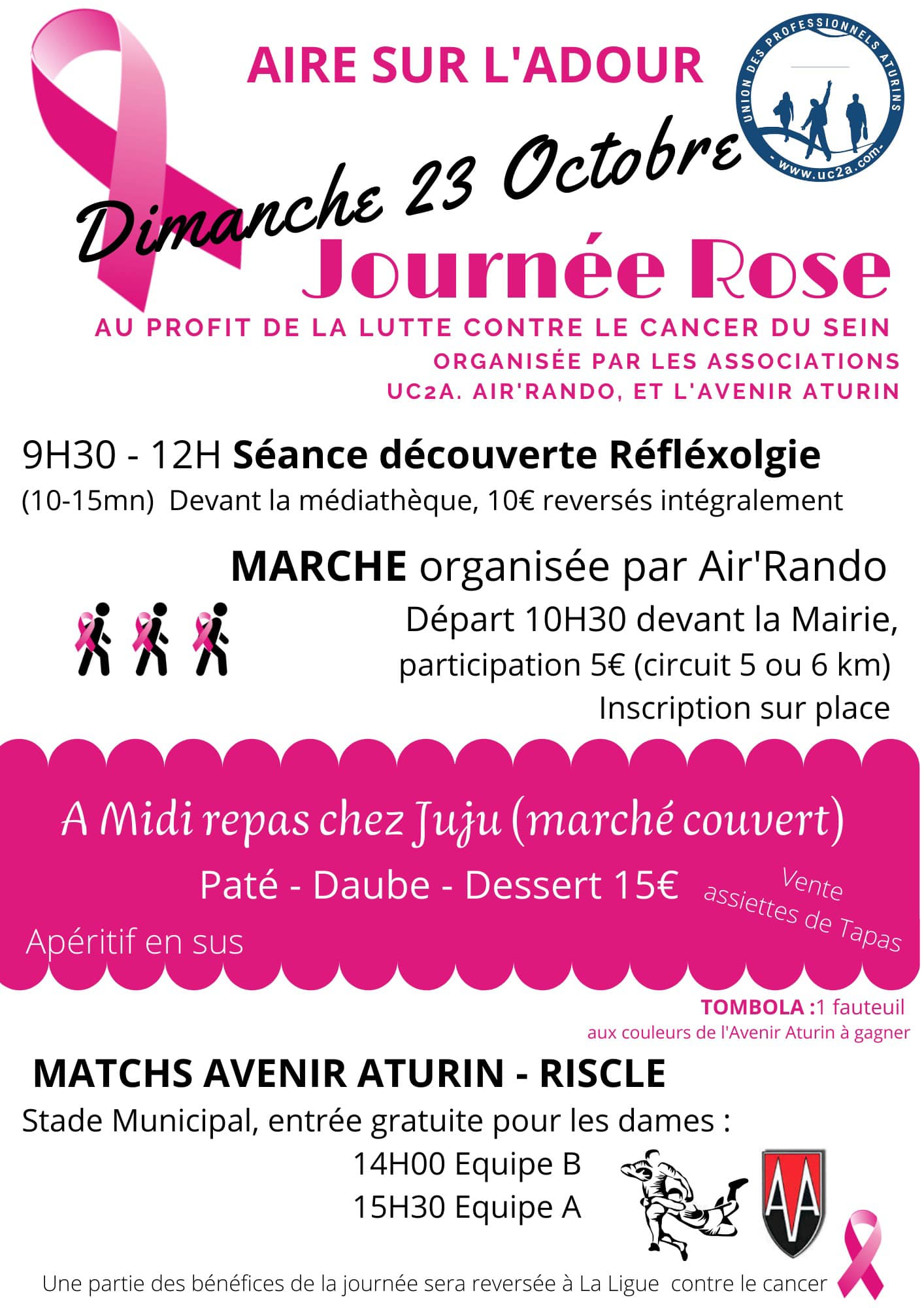 Passez la journée en rose aux côtés d’UC2A, de l’Avenir Aturin et d’Air’Rando pour apporter votre soutien à la campagne nationale de lutte contre le cancer du sein qui est le premier cancer chez la femme.