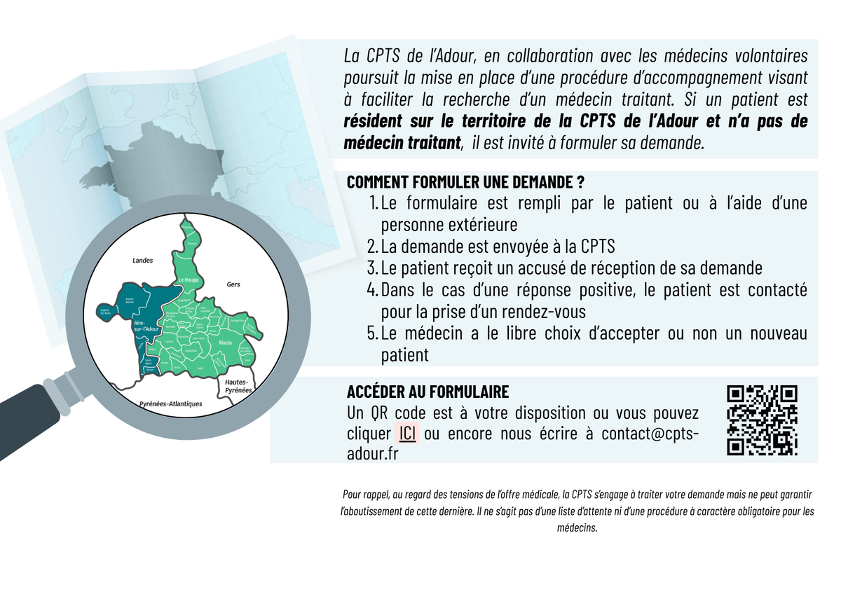 La CPTS de l’Adour, en lien avec les médecins volontaires du secteur, propose une procédure d’accompagnement