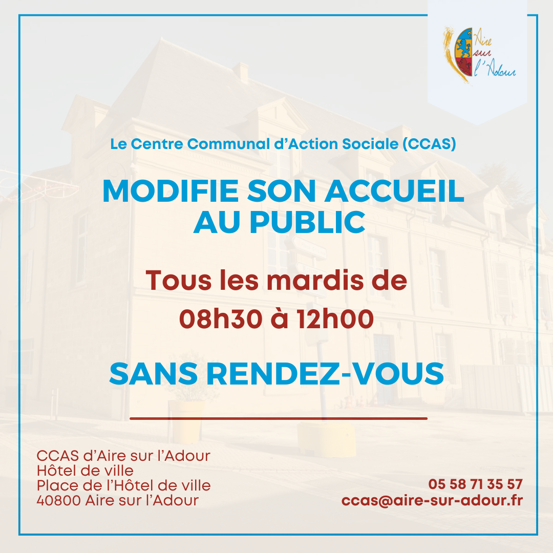 Bonne nouvelle ! Le Centre Communal d’Action Sociale (CCAS) vous ouvre ses portes sans rendez-vous tous les mardis, de 8h30 à 12h00.