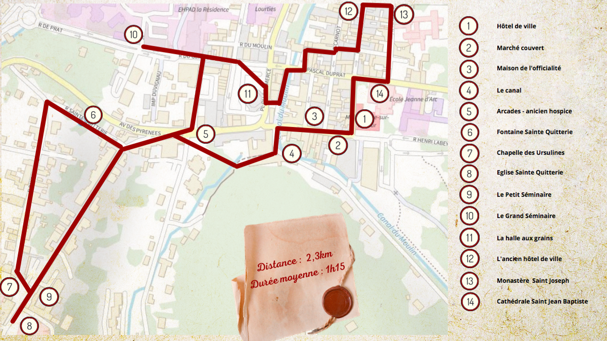 Saviez-vous que notre ville est l’une des plus anciennes du département ? Afin de mettre en lumière l’histoire de notre ville, nous vous avons concocté une agréable balade de 2,3km d’une durée moyenne de 1h15/30min comprenant 14 étapes pour lesquelles vous découvrirez un bref historique. Le circuit débute devant l’hôtel de ville et se termine devant la cathédrale Saint Jean-Baptiste. Alors, n’attendez plus et partez à la découverte du patrimoine historique d’Aire sur l’Adour ! 😎 Téléchargez le circuit ici 👉 balade historique Pour en savoir plus sur l’histoire de notre ville c’est par ici 👉 Histoire d’Aire sur l’Adour |