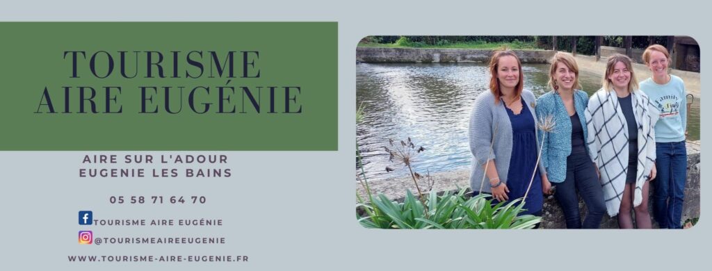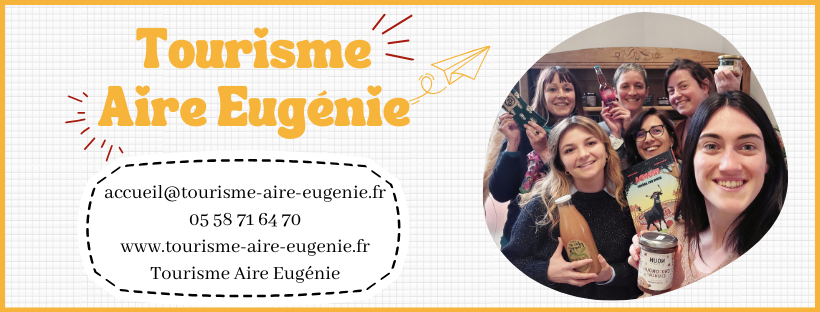 L’Office de Tourisme Communautaire d’Aire sur l’Adour est joignable au 05 58 71 64 70 ou à accueil@tourisme-aire-eugenie.fr