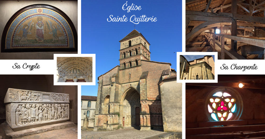 L’église Sainte-Quitterie se distingue par sa tour carrée et son clocher porche abritant un magnifique portail sculpté. Dans la crypte se trouve le très beau tombeau en marbre blanc (IVème siècle) de la Sainte.