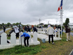 En partenariat avec l’association Le Souvenir Français, les élèves de la classe de Défense du Lycée Gaston Crampe d’Aire sur l’Adour ont participé ce jeudi 2 mai 2024 au nettoyage des 39 sépultures de morts au combat pour la France situées au cimetière du centre-ville (rue du Souvenir Français). Pour ces jeunes lycéens, cette action s’inscrit dans le cadre de leur projet pédagogique en lien avec le devoir de mémoire des anciens combattants français.