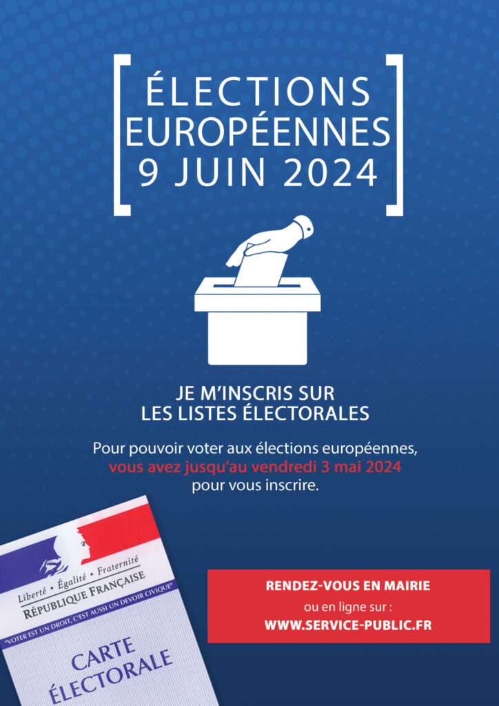• Le vendredi 3 mai 2024 pour les inscriptions et changements en mairie (prévoir un justificatif de domicile et une pièce d’identité).