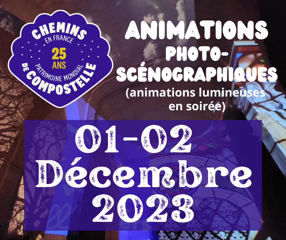 Thèmes : 25ème anniversaire du classement du bien « Les Chemins de Saint-Jacques-de-Compostelle » au patrimoine mondial de l’UNESCO, Téléthon 2023 et Marchés de Noël.