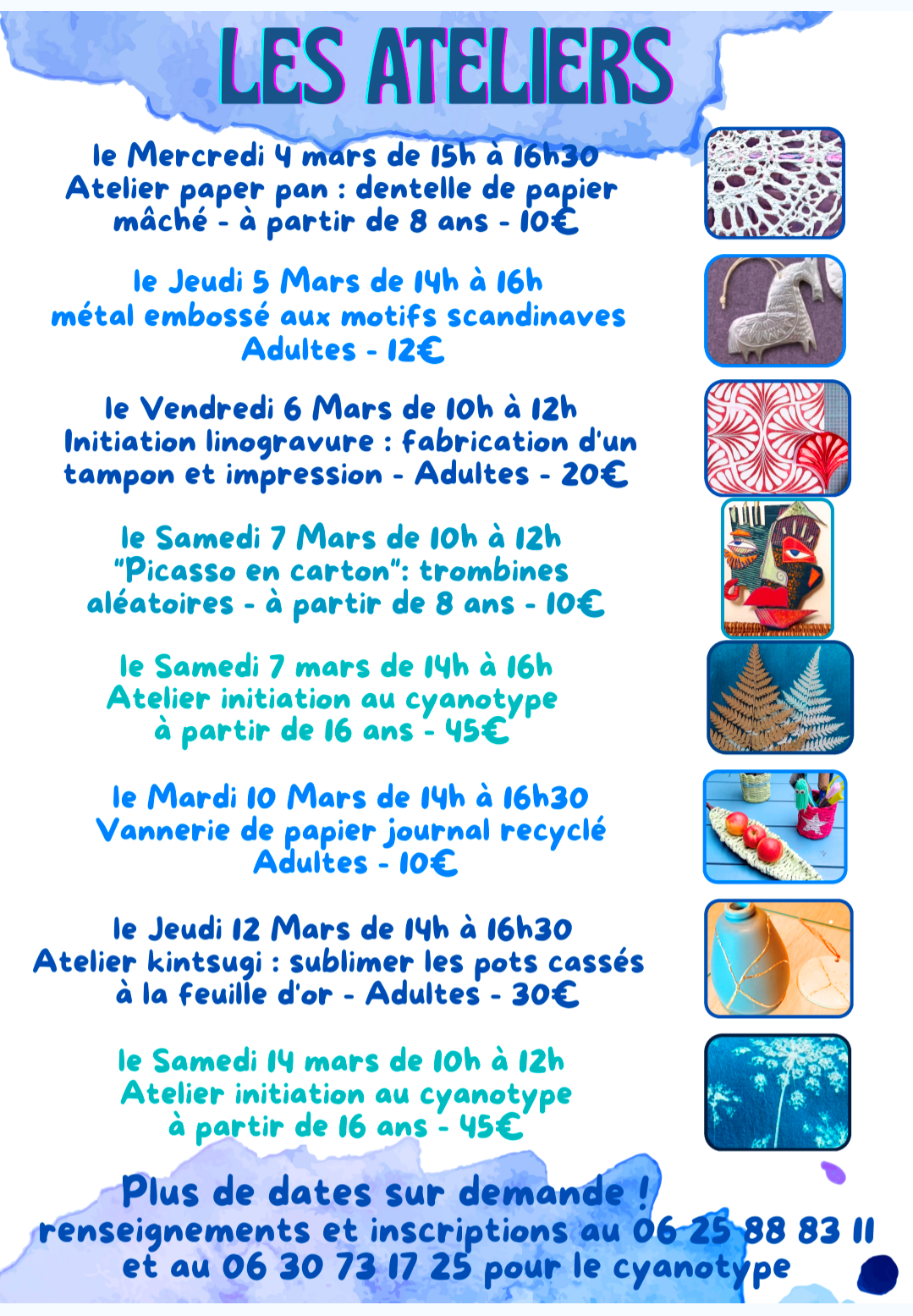 Tout au long de l’exposition, des ateliers créatifs seront également proposés pour celles et ceux qui souhaitent expérimenter et partager un moment artistique.