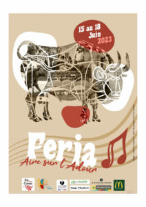 Ce vendredi 2 juin, à 19h à la Halle aux Grains, le comité des fêtes a dévoilé l’affiche officielle des férias 2023 d’Aire sur l’Adour en présence de Monsieur le Maire Xavier Lagrave, des élus municipaux et du public venu en nombre. La designeuse, de l’agence Colombier Graphisme, explique ses choix graphiques et références :