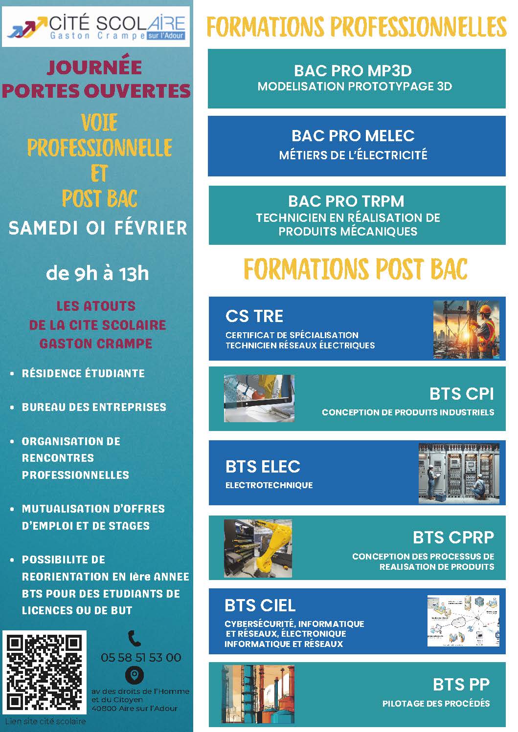 𝐋𝐚 𝐜𝐢𝐭𝐞́ 𝐬𝐜𝐨𝐥𝐚𝐢𝐫𝐞 𝐆𝐚𝐬𝐭𝐨𝐧 𝐂𝐫𝐚𝐦𝐩𝐞 vous ouvre ses portes ! 𝐏𝐨𝐮𝐫 𝐥𝐞𝐬 𝐯𝐨𝐢𝐞𝐬 𝐩𝐫𝐨𝐟𝐞𝐬𝐬𝐢𝐨𝐧𝐧𝐞𝐥𝐥𝐞𝐬 𝐞𝐭 𝐩𝐨𝐬𝐭 𝐁𝐚𝐜 Quand ? 𝐒𝐚𝐦𝐞𝐝𝐢 𝟏𝐞𝐫 𝐟𝐞́𝐯𝐫𝐢𝐞𝐫 𝟐𝟎𝟐𝟓 De 9h à 13h Venez découvrir leurs filières, échanger avec leurs enseignants, élèves et personnels ! Parents, futurs élèves et curieux, vous êtes les bienvenus ! Share this post