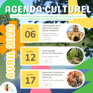 À savoir : activités culturelles gratuites proposées par les services de la mairie en partenariat avec les associations locales.