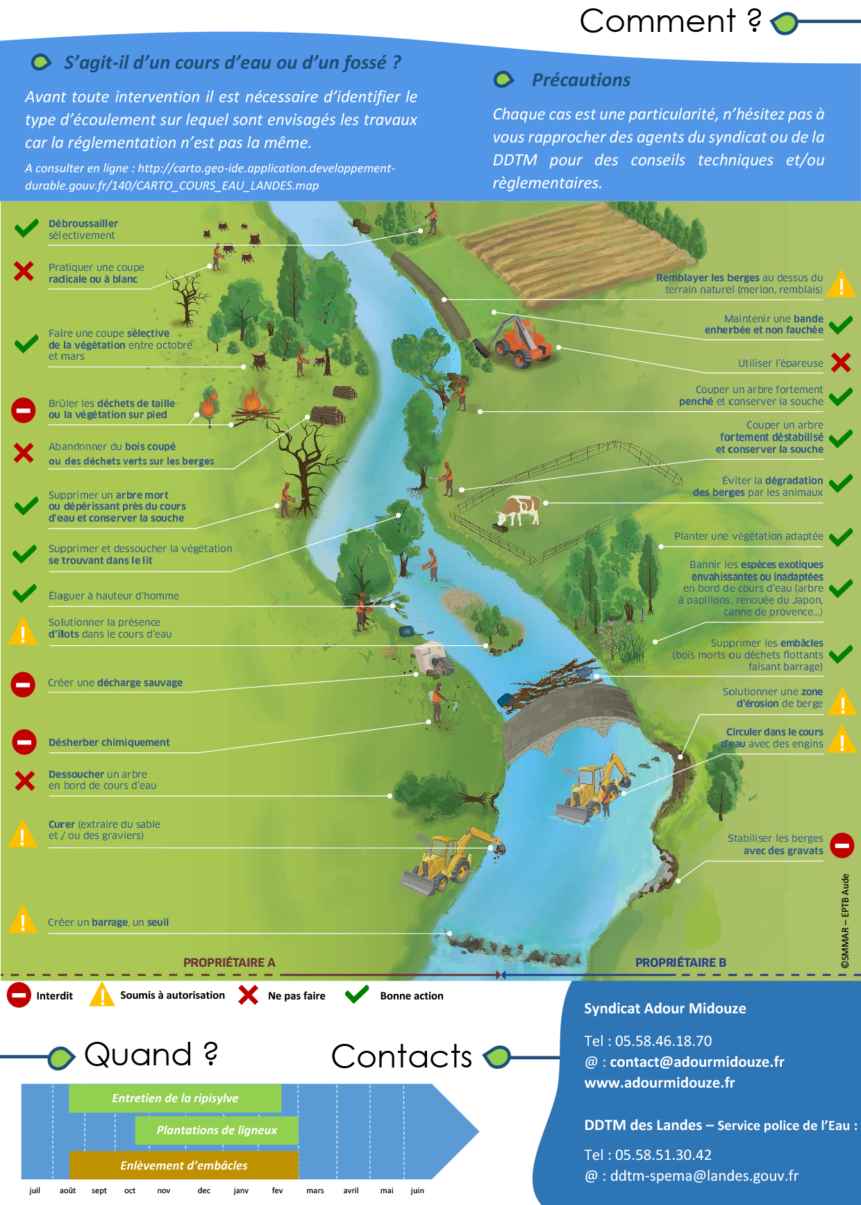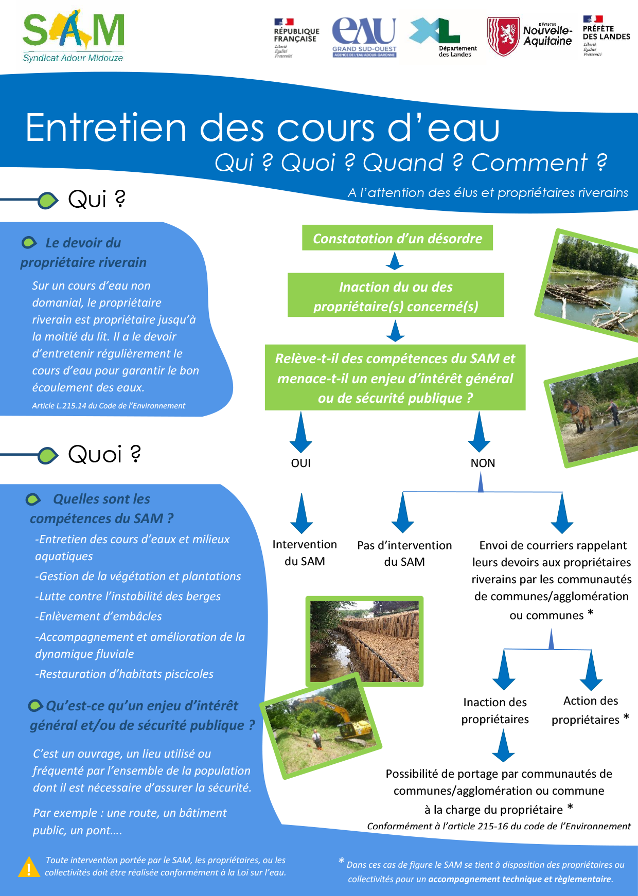 Le Syndicat Adour Midouze – SAM en charge de la gestion des milieux aquatiques sur notre territoire met à votre disposition sur son site internet une 𝐩𝐥𝐚𝐪𝐮𝐞𝐭𝐭𝐞 𝐝’𝐢𝐧𝐟𝐨𝐫𝐦𝐚𝐭𝐢𝐨𝐧 à ce sujet : qui fait quoi ? Quand ? Comment ?