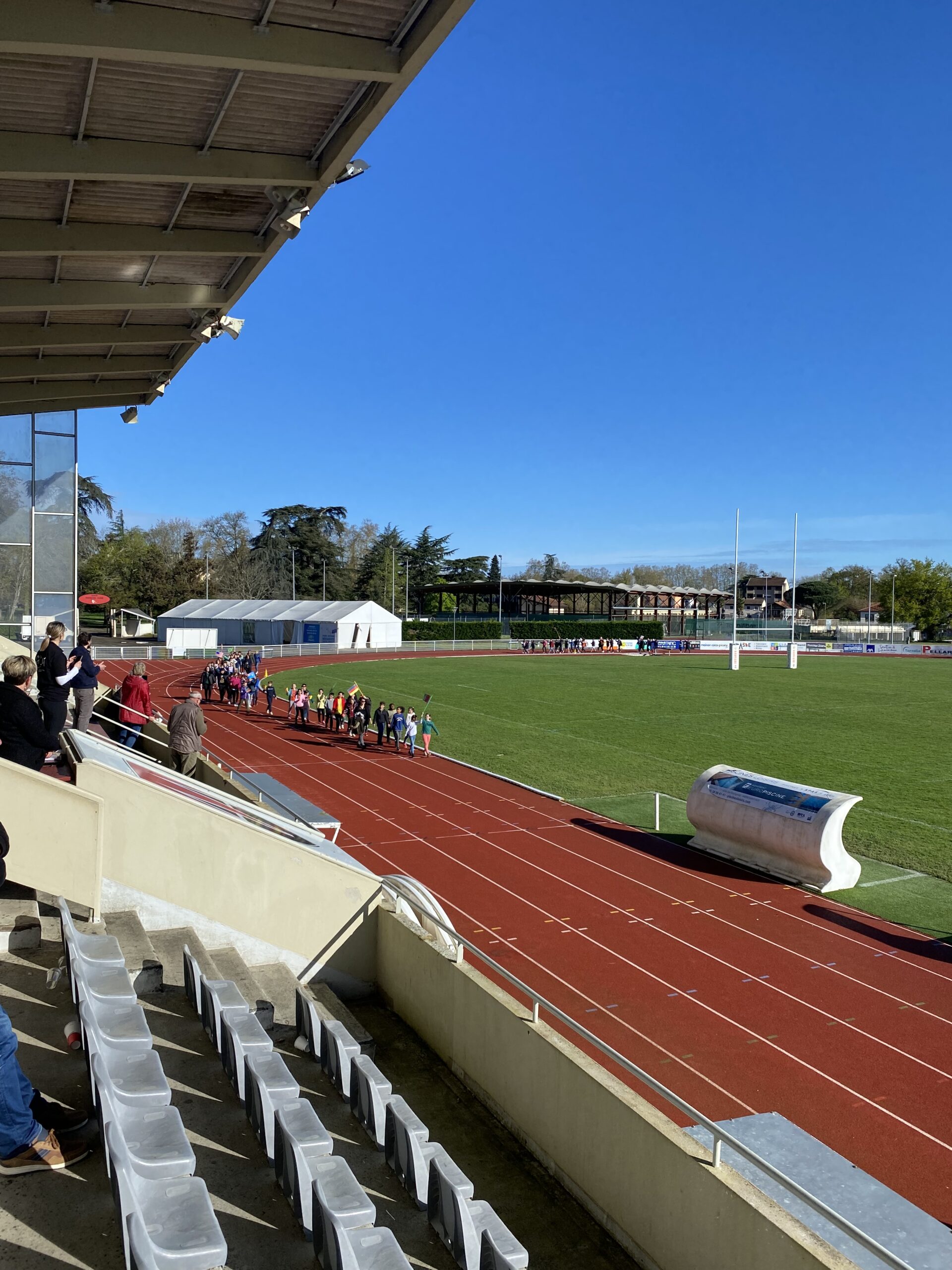 🇰🇬Celle-ci a débuté par une cérémonie officielle au stade François Farré: tour de piste des athlètes, relais pour la transmission de la flamme, mise en place de chaque groupe. Après deux belles chorégraphies, les discours de l’adjointe aux Sports Corinne Laffittau et du maire Xavier Lagrave, les jeux ont été lancés.